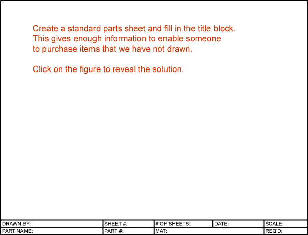 Standard parts include any part that can be bought off the shelf. They do not need to be drawn. Purchasing information is given on the standard parts sheet attached to the back of the working drawing package.What type of information should be included?